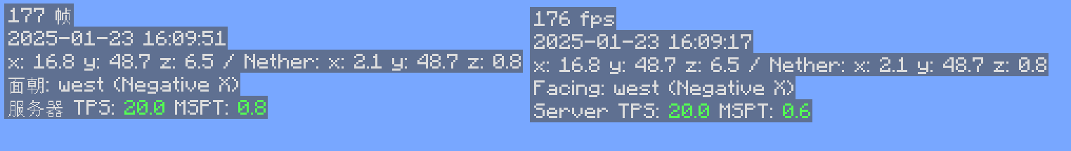 Minihud 显示的文本可以被翻译,效果如下